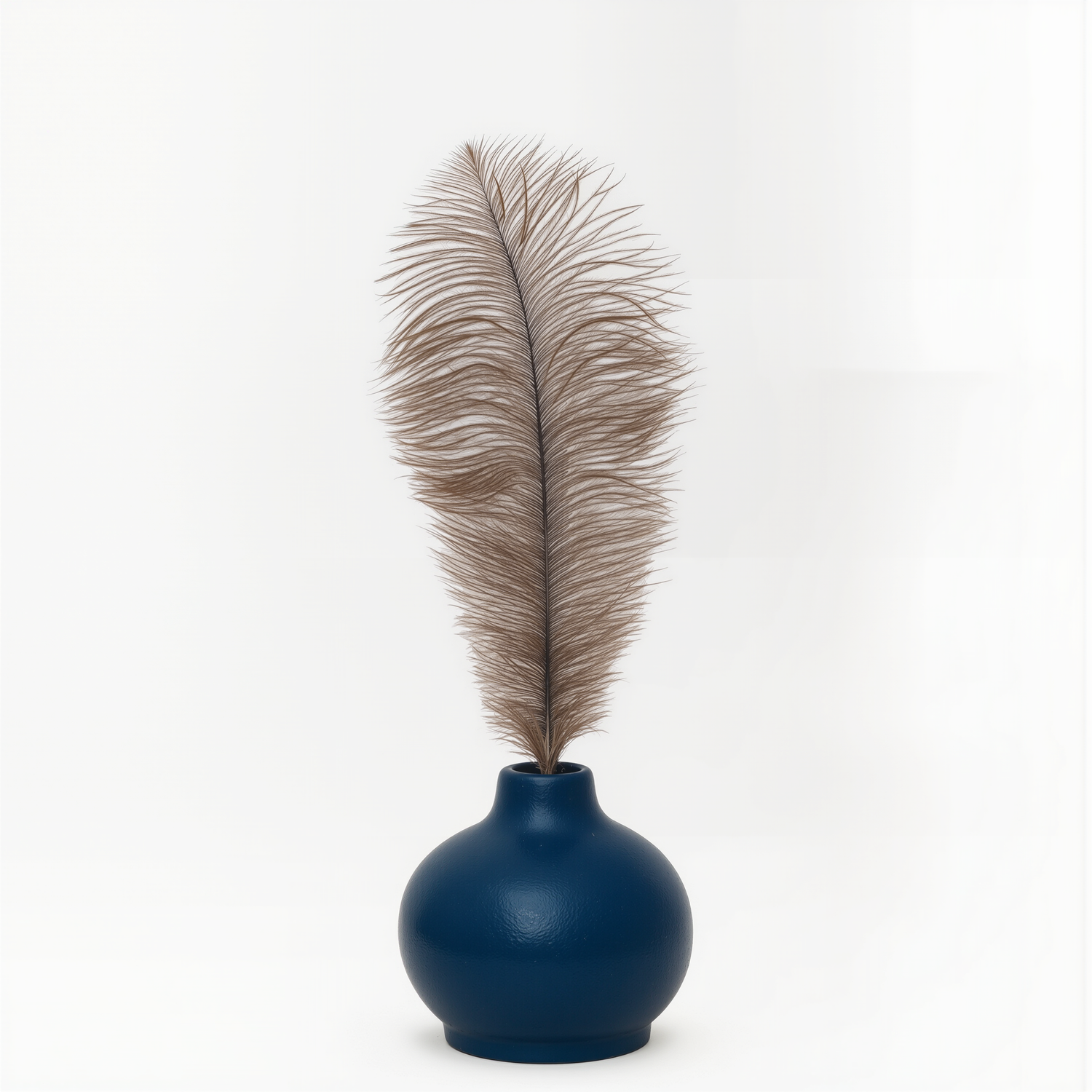 Elegant Ceramic Vase with Real Ostrich Feathers – Handmade Pottery Centerpiece for Home Décor – Natural Rustic Farmhouse Decorative Vase - Luxury Alternative to Roses & Artificial Flowers (Navy Blue)